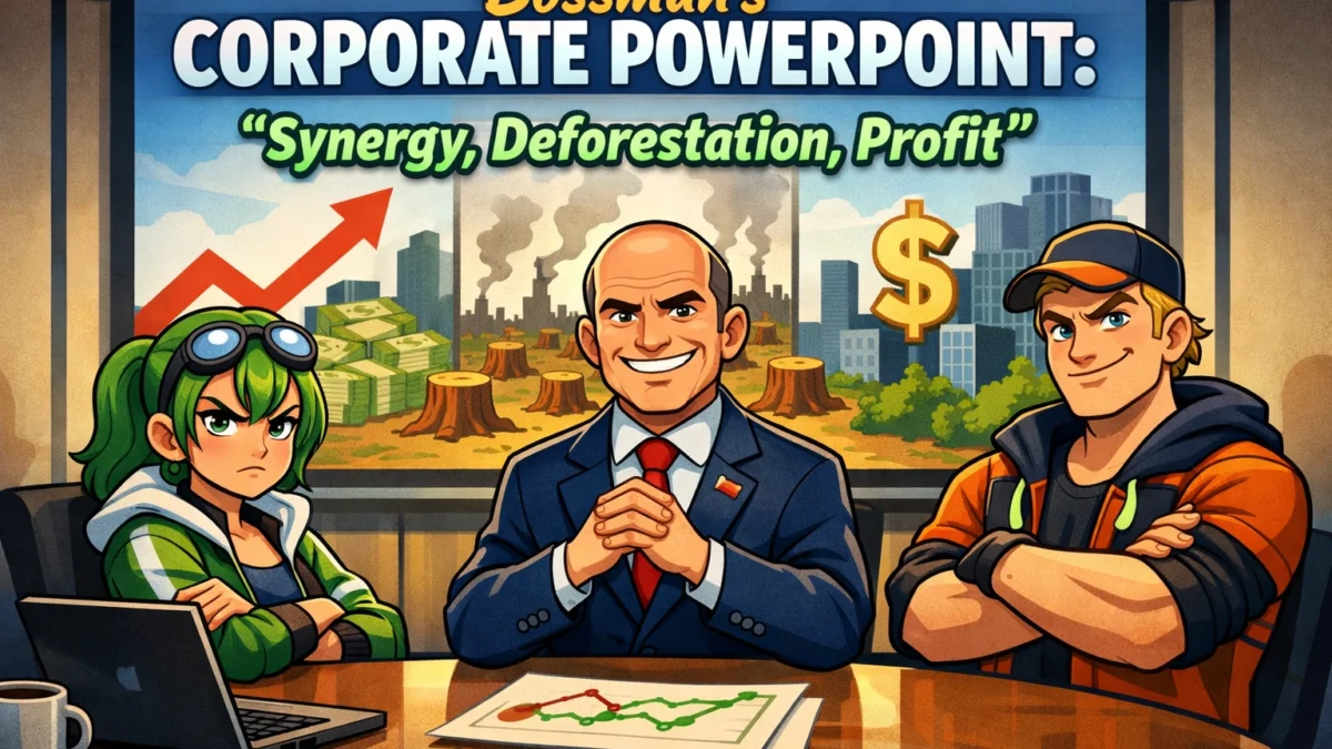 Meta Description: Get a leaked look at the most soulless PowerPoint of 2026. Bossman breaks down how to turn the rainforest into a revenue stream through "Aggressive Canopy Optimization." Spoiler: The Rainsavers are the only ones standing in his way.