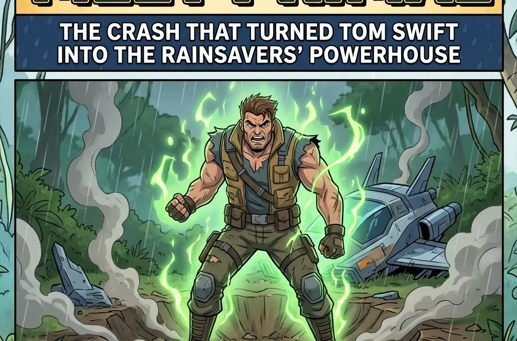 Before he became The Rainsavers' unstoppable force, Tom Swift was just a freelance pilot with a beat-up seaplane called "The Simian." He spent his days flying in and out of Manaus, Brazil, carrying equipment and test results for Dr. Manelo Mubari's environmental research projects. It wasn't glamorous work, but Tom loved the freedom of the skies and the wild beauty of the Amazon stretching endlessly below his wings.