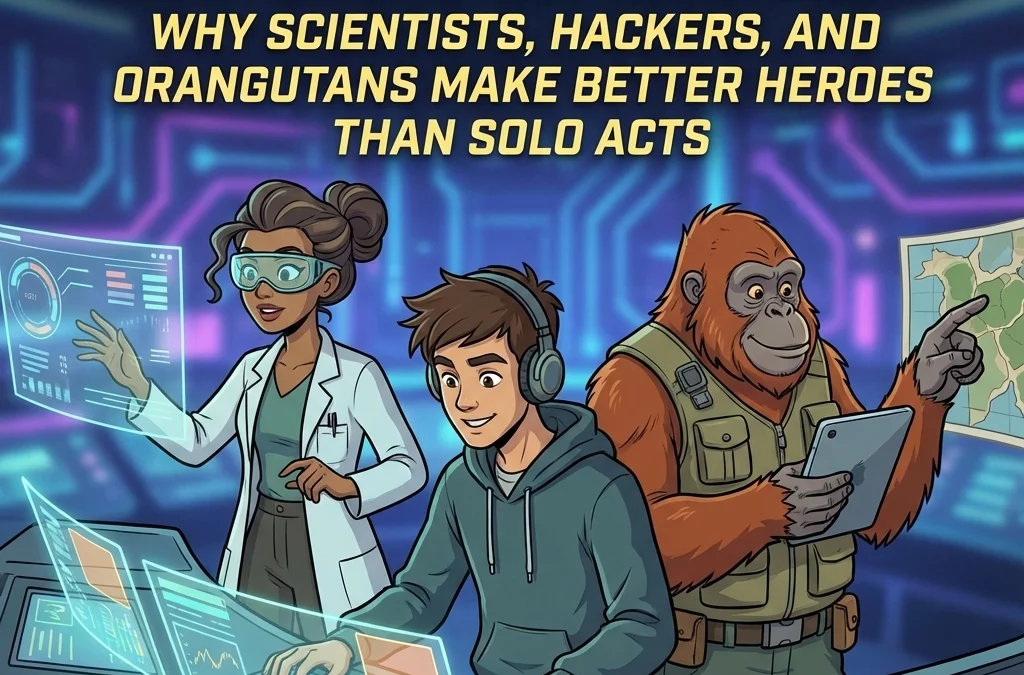 Solo heroes had their moment. The brooding loner with a tragic backstory, the chosen one destined to save the world alone, we've seen it all before. But here's the thing: real problems need real teams. And the best adventures happen when you mix brilliant scientists, tech-savvy hackers, and yes, even genius orangutans.